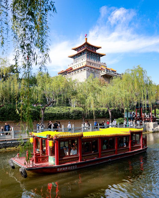 乘一叶画舫,沿护城河缓缓而行——这里是全国唯一由泉水汇流而成的护城河。黑虎泉气势磅礴,声如虎啸,两岸垂柳轻摇,仿佛航行在唐诗宋词的唯美画卷中。这里没有围墙,无需门票,就可以品尝到泉水的清冽甘甜,感受到浓郁的市井烟火。